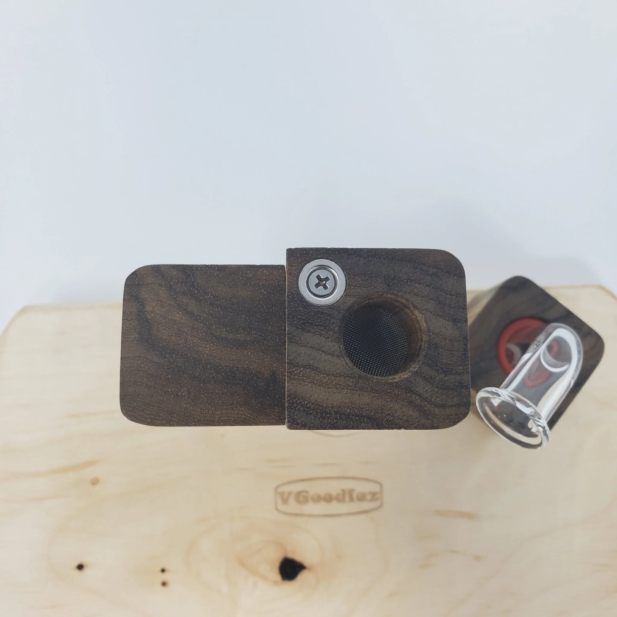 The Flip Brick is made by hand from the same high-quality hardwood, hand-blown glass, and super-powerful rare earth magnets as all of our other devices. Every Flip Brick ships with both 18.8mm and 14.4mm Male glass connectors to fit most glass right out of the box. The Flip Brick also ships with a 6-pack of screens, one stainless and two wooden stir sticks, a butane torch, two Restrictor Discs, and instructions for use.
